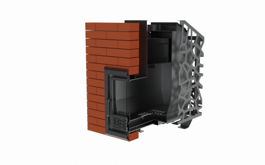 После кладки внутрь слоя кирпича традиционно закладывают зазор 5–6 см между стенкой металлической печи и кирпичной «рубашкой». Этот зазор нужен для циркуляции воздуха, чтобы кирпичи не перегревались. Важно также делать вентиляционные отверстия в кладке (в нижних и верхних рядах), которые обеспечивают приток холодного воздуха и выход горячего.